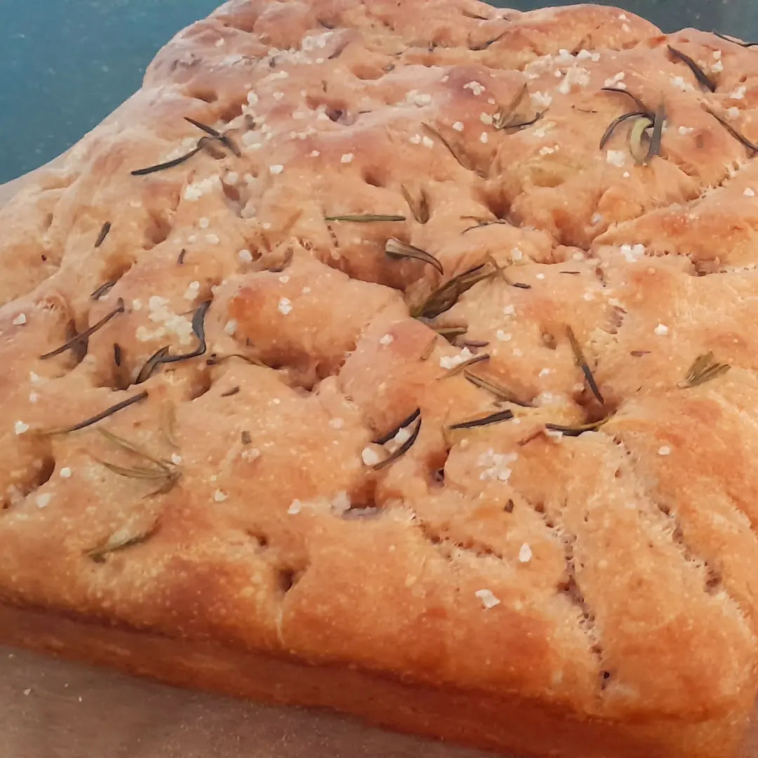 This flat leavened bread, known as focaccia, boasts a delightful crunchy exterior complementing its tender and slightly chewy interior. Whether served as a side dish or sandwich bread, it is sure to please. Baked in a 9" x 9" pan, it's a delicious option for any occasion.